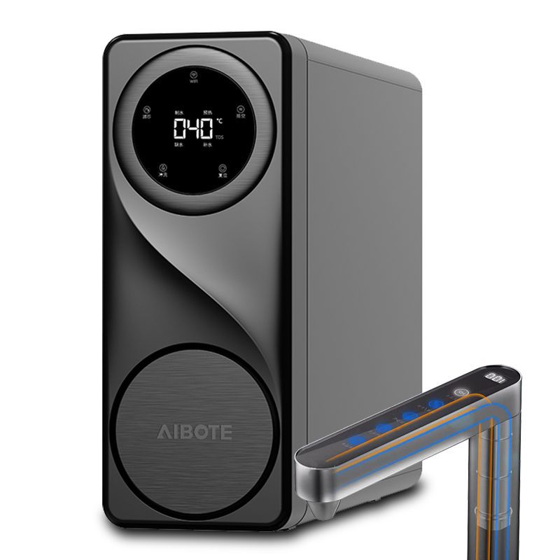 Aibote’s RO instant hot water dispensers are equipped with a built-in heating device and a 5-in-1 filter cartridge that can deliver both purified cold water and hot water. The hot water dispenser can deliver hot water in a short period to meet your demands of drinking milk, coffee and tea, eliminating the need for purchasing multiple kitchen appliances used to deliver purified water or instant hot water like water filter kettle, thermostatic kettle and traditional water filtration system.